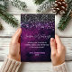 Chic violet noir gouttes d'argent parties scintillant Noël Noël Noël nouvelle année carte de voeux. Carte de Noël chatoyante, mignonne et étincelante. Idéal pour partir en famille ou entre amis pour les vacances. Pour le rendre plus spécial il est embelli avec la belle fausse parties scintillant. Cette conception peut également être transférée sur n'importe quel produit sur zazzle. Vous pouvez le personnaliser avec votre propre texte et informations. VEUILLEZ NOTER : Il s'agit de graphiques imprimés plats - pas de parties scintillant réelle, de bijoux ou de pièces surélevées