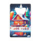 Le subtil éclat de petites lumières autour de la fenêtre donne une ambiance cosy à la maison en bois, tandis que le bonhomme de neige se tient joyeusement à la porte, exhalant la chaleur dans l'air, symbolisant la joie et le bonheur de la saison.
