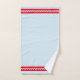 Ces serviettes de Noël amusantes apportent la joie des vacances dans n'importe quelle salle de bain. Arrière - plan bleu avec Père Noël et Rudolph qui vous espionne. Accents de sucre de canne. Rideau de douche assorti.