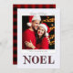 Joyeuses Fêtes de Noël Carte Festive Comprend Un Motif Rouge & Vert Plaid Décoratif "Noel" Script, Nettoyant Gris Clair Arrière - plan Dotted Dash Line et Un Motif Rouge & Noir Plaid À damiers Au Dos De La Carte.