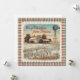 Charmante scène de ferme d'hiver de style rétro avec "Joyeux Noël du Kansas" carte de Noël carré sur arrière - plan plaid festif.