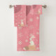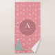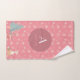 Cet adorable ensemble de serviettes de bain à thème de Noël présente des flocons de neige et des animaux en bois tels que le cerf, le renard, le lapin et le hérisson, également un arbre de Noël sur un arrière - plan rose pastel.