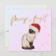Carte de voeux de Noël ou de Noël avec un chat siamois dans un chapeau de Père Noël Changez facilement les informations pour vous. Un accueil de saison amusant et lumineux.