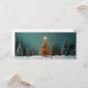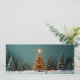 Décor de sapins sur fond vert, le sapin central est décoré de guirlandes et surmonté d'une étoile lumineuse.