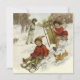 Illustration vintage de joyeux Noël avec des filles et des garçons heureux jouant et faisant de la luge dans une colline enneigée le jour de Noël. Le frère et la sœur s'amusent avec leur nouvelle luge tandis que leur chiot terrier s'amuse aussi ! Meilleurs vœux pour la saison !