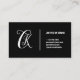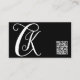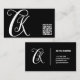 Ce modèle de carte de visite modifiable est parfait pour toute entreprise qui veut transmettre un sens de sophistication et d'élégance. Il a un arrière - plan noir, un design minimaliste, de grandes lettres calligraphiques qui conviennent à toute industrie ou niche. Il dispose également d'un code QR qui relie vos contacts à votre site Web ou à votre portefeuille.