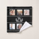 Faites votre propre collage photo de famille unique. Utilisez six, 6 de vos photos préférées de vos enfants, de votre famille, de vos amis ou de votre animal de compagnie! Un arrière - plan noir classique. Personnalisez et ajoutez votre monogramme familial initial décoré d'une couronne classique.