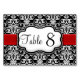 Adorable, chic et sassy haut contraste noir et blanc motif damassé ceinture avec une atmosphère baroque classique, combiné avec la touche moderne d'une bande d'accent rouge vif qui ressemble à un ruban satiné. Personnalisez-le avec n'importe quel numéro de table ou autre personnalisation. Copyright de conception © CustomInvitesOnline.com