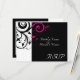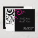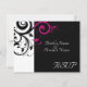 Carte RSVP pour correspondre à notre invitation de mariage tourbillon inversé noir et blanc magenta, avec un fond de feuille de défilement tourbillon graphique gras. Personnalisez en ligne avec vos détails de mariage.