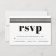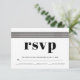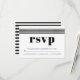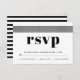 Bande blanche noire élégante carte de mariage moderne RSVP. Il présente une bande avec un cercle avec vos initiales et deux petits coeurs et votre texte. Le noir comprend une motif rayée noire et blanche.