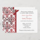 Noir et blanc aux accents roux, cette faire-part de mariage damassée et ruban a une sensation vintage. Idéal pour un mariage de style vintage utilisant un thème de couleur mariage de noir, blanc et rouge. Le texte est entièrement personnalisable. Modifiez-le simplement en utilisant l'option personnalisée. Pour modifier la police ou la disposition du texte, vous pouvez le faire à l'aide de l'option personnaliser. Cette invitation est actuellement customisée pour un mariage, mais vous pouvez la modifier pour fonctionner comme une invitation pour toute autre occasion spéciale. REMARQUE : Il s'agit d'un design imprimé plat sans embellissement en relief ou en 3D.