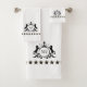 Crête royale noire de luxe avec rouleaux, couronne, deux chevaux, initiales mariages personnalisables, bande d'étoiles dorées.