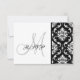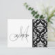 Cartes RSVP Invitation Black et Wite Mariage damassé personnalisées avec initiale monogramme. Customisez avec votre monogramme, informations RSVP. Ajoutez toutes les informations de votre mariage rsvp au dos de la carte en utilisant les invites de menu faciles à utiliser de Zazzle. Superbe damas et élégant monogramme design initial qui fonctionne pour toutes les lettres de l'alphabet. Design de disposition par Elke Clarke ©. Carte graphique sous licence.