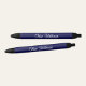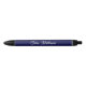 Stylo personnalisé en bleu marine avec script blanc. Recherche propre et polie pour les affaires ou l'écriture quotidienne.