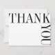 La typographie classique en noir et blanc se sent moderne et fraîche dans une disposition unique et frappante qui pousse littéralement les bords de la page. Un feuille blanc ample espace pour une note de remerciement écrite à la main.