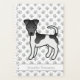Illustration originale de Destei d'un chien de race Smooth Fox Terrier vêtu de noir et blanc. Il y a aussi une zone de texte personnalisable pour un nom ou un titre. L'arrière - plan a un motif gris clair d'empreintes de pattes de chien.