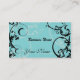 Cette conception de carte de visite est sûre d'attirer l'attention et de vous aider à se tenir dans la foule. Cette conception a un bel arrière - plan de turquoise avec un motif floral dans le noir. Perfectionnez pour n'importe quelles affaires mais particulièrement grand pour décorer, thérapie de massage, salon de clou, spa, des bijoux, cosmetologist, mode, consultant en matière de beauté, entraîneur personnel, ou quand vous voudriez un contact élégant. Ajoutez votre information et il est prêt d'aller !