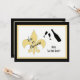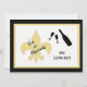 Ces invitations élégantes de partie d'échantillon de vin comportent un symbole de Fleur de Lis d'or et des silhouettes noires d'une bouteille de vin et de deux verres de vin. L'avant de la carte est décoré des mots français "vin et fromage" (vin et fromage). Vous pouvez également ajouter votre propre salutation personnelle à l'avant de la carte. Écrivez votre information de partie dans le modèle pour le dos de la carte, et le santé de votre d'à ! (Acclamations !) visitez www.zazzle.com/enchantedbayou* pour les cartes orientées de Cajun et de Nouvelle-Orléans, les invitations et les cadeaux. Visitez www.zazzle.com/enchantedbayou* pour les cartes orientées de la Nouvelle-Orléans et de Cajun, les invitations et les cadeaux. L'invitation est entièrement personnalisable.