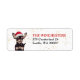Le côté gauche de ces étiquettes d'adresse de retour comporte un adorable chien noir et bronzé Chihuahua portant un casquette du Père Noël rouge et blanc. Les confettis d'or intéressent l'arrière - plan. Votre texte personnalisé est en rouge et noir à droite.
