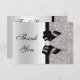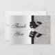 Cartes de remerciement personnalisées formelles et personnalisées pour tout événement - mariages, baby showers, fêtes d'anniversaire, sweet 16, célébrations de Quinceanera, fiançailles, douches de mariée, etc. Élégants remerciements personnalisés argent et noir recto verso avec un beau motif imprimé scintillant pailleté, strass, sequins, jolis nœuds et rubans vectoriels brillants imprimés et image élégante et stylée imprimée diamants bling bijoux et texte noir. Ces cartes classe, glamour et à la mode sont décorées des deux côtés. Belles cartes recto verso chic, tendance et modernes avec éclat et glamour. J'ai des produits assortis dans ma boutique. Le texte, la police et les couleurs de la police sont tous personnalisables pour répondre à vos besoins. Si vous avez besoin d'aide pour personnaliser votre produit, veuillez me contacter via ma