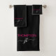 Customisé monogrammed simple nom de script et initial moderne et élégant ceinturé élégant noir et rose chaud Ajouter votre nom avec Girly Grey Initials. Cette serviette de bain personnalisée est parfaite pour Sweet 16, 1er, 21e, 30e, 40e, 50e, 60e, 70e, Anniversaire, Mariages, Fête, Cadeau de Vacances, Quinceanera, Graduation, Fête des mariées, Fête de Bachelorette, Anniversaire ou Baby shower.