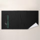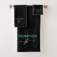 Customisé monogrammed simple nom de script et initial moderne et élégant ceinturé élégant noir et Turquoise Ajouter votre nom avec Girly Grey Initiales. Cette serviette de bain personnalisée est parfaite pour Sweet 16, 1er, 21e, 30e, 40e, 50e, 60e, 70e, Anniversaire, Mariages, Fête, Cadeau de Vacances, Quinceanera, Graduation, Fête des mariées, Fête de Bachelorette, Anniversaire ou Baby shower.