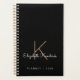 Moderne planificateur noir personnalisé avec votre initiale et votre nom dans une typographie dorée minimale et un script blanc. Ajoutez un titre et une année si vous le souhaitez.