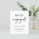 Nous sommes fiancés ! Annoncez votre fiançailles à votre famille et à vos amis avec ce faire-part de fiançailles photo personnalisable. Il comprend la calligraphie moderne et la typographie simple. Ce faire-part fiançailles photo moderne est disponible en d'autres couleurs. Personnalisez en ajoutant vos photos, noms et autres détails.