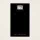 Carte d'affichage de produit d'oreille verticale couleur noire ou personnalisée avec logo personnalisé modèle et icônes de médias sociaux. Design élégant et minimal.