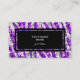 Carte de visite avec une conception imprimée moderne comportant des étoiles dispersées au-dessus d'un arrière - plan stylisé de motif de rayure de zèbre "de regard de paillette". Une conception personnalisable aux nuances du pourpre et du gris argenté pour que vous personnalisiez avec votre propres texte, images et idées. Veuillez noter ceci est une image imprimée d'art numérique, elle ne brille pas ou ne contient pas de vraies parties scintillantes ou paillettes.