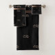 Noir élégant avec un or rose, cadre faux métallique. Personnalisez et ajoutez vos lettres monographiques, vos initiales et votre nom. Lettres de couleur or rose. Le nom est écrit avec un script de style moderne écrit à la main. Le monogramme comme motif arrière - plan.