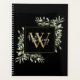 Elégant aquarelle verdure feuille monogramme nom planner avec un monogramme or initial sur un arrière - plan noir avec votre nom dans un script blanc élégant. Conçu par Thisisnotme©