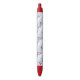 Ce stylo festif de Noël montre une famille de bonhomme de neige avec Papa, Maman, et enfant. Les trois adorables bonhommes de neige portent des chapeaux de Père Noël rouges, de grands sourires et des écharpes colorées autour du cou.