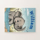 Adorable nom éléphant Jigsaw Puzzle présente une scène délicieuse d'un éléphant ludique dans un étang, en ajoutant le prénom pour personnaliser en fait un cadeau spécial!