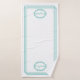 Personnalisez une serviette de bain avec votre nom en ovales fleuries à chaque extrémité de la serviette. La serviette est également équipée de trois rectangles en bordure de l'ensemble de la serviette. Le design est une couleur turquoise sur un arrière - plan de serviettes blanches. Si vous avez besoin d'aide pour personnaliser s'il vous plaît envoyez-moi un message.