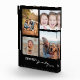 Créez votre propre bloc photo avec 4 de vos photos préférées sur un arrière - plan noir.Personnalisez avec le nom de famille et l'année.