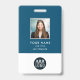 Customisez ce code à barres et le logo de l'entreprise ou de la marque de l'employé de la petite entreprise et de l'entreprise. badge minimaliste de sécurité photo en bleu marine et blanc entièrement personnalisable avec les détails de votre entreprise ainsi que des informations sur le personnel à la fois sur le devant et l'arrière. Aussi disponible avec cordon, clip métallique ou avec clip rétractable. Aucune commande minimale n'est requise et aucun frais de mise en place. Commande selon vos besoins