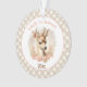 Cerf mignon avec vibes vintages et votre propre photo de l'autre côté pour 1er ou tout ornement de Noël en champagne et couleurs pêche. Personnalisez facilement le texte et l'image. - Kate Eden Art