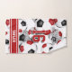 Cette serviette à main esprit d'équipe pour un joueur de football comprend un nom d'athlète et un numéro de maillot faciles à personnaliser, ainsi qu'un nom d'équipe et de mascotte sur l'image arrière - plan d'un groupe de balles de football rouge, noir et blanc disposées aléatoirement sur un arrière - plan blanc. Les boules de football sont ombragées de façon sélective pour leur donner une apparence 3D. Le nom de l'athlète peut être personnalisé sur des rayures horizontales rouges à l'extrémité inférieure de la serviette - par katz_d_zynes