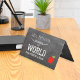 Tableau noir plié carte de remerciements avec le nom de votre professeur et script de typographie blanche inspirée de la citation "les enseignants changent le monde un enfant à la fois". Personnalisez-le avec le nom de votre enseignant sur le devant et votre texte et signature à l'intérieur et faites-le un cadeau de remerciement réfléchi pour votre meilleur éducateur / mentor.