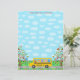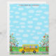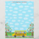 Écrivez vos notes de classe dans le style avec ce design de bus scolaire personnalisé et mignon pour les enseignants. Ce design est parfait pour un cours élémentaire ou préscolaire. Il montre un groupe d'animaux en peluche dans le bus scolaire. L'ours conduit, le renard écrit dans son carnet, le hibou regarde par la fenêtre, le cochon est un élève bien élevé, et le lapin lapin agite un drapeau sur le siège arrière. Autour du bus, c'est une journée heureuse avec des fleurs, des nuages, des arbres et des oiseaux. Il y a beaucoup de place pour écrire sur le ciel nuageux clair. Utilisez le modèle facile pour ajouter votre texte. "Customiser" pour apporter des changements plus détaillés. Retournez à l'école dans le style avec ce joli design personnalisé.