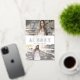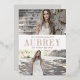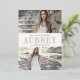 Le faire-part de graduation chic et moderne présente deux de vos photos horizontales/paysagères préférées biscuites par une bande blanche portant le nom du diplômé en feuille d'or rose, l'école et l'année de graduation. Personnalisez l'envers d'une photo supplémentaire et d'un message personnel.