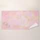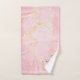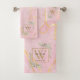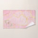 Ensemble de serviettes de bain élégantes à motif de monogramme et de verdure à l'aquarelle avec un monogramme initial doré sur un fond de géode d'agate rose. Conçu par Thisisnotme©