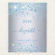 Un arrière - plan métallique faux argenté décoré de poussière de parties scintillant bleue. Personnalisez et ajoutez votre nom. Le nom est écrit avec un script de style moderne écrit à la main avec des swashes. Pour que les swashes ne suppriment que le nom de l'échantillon, laissez les espaces ou émoticônes devant et après le nom.