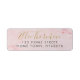 Une étiquette de nom et d'adresse de retour à thème chic avec votre nom dans une police de script doré au-dessus de vos coordonnées en texte classique sur un fond en marbre rose blush.