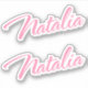 Nom Natalia dans la police de script cursive en joli rose x2. Deux copies du nom.