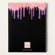 Un arrière - plan noir chic avec des gouttes de parties scintillant irrégulière de couleur arc-en-ciel tendance, la peinture goutte à goutte dans l'or violet, rose et rose. Modèle pendant un an (à l'envers) Personnalisez et ajoutez un nom. Le nom est écrit en rose avec un grand script de style moderne et écrit à la main avec des swashes. Parfait pour l'école, le travail ou l'organisation de votre vie personnelle/familiale. Pour que les swashes ne suppriment que le nom de l'échantillon, laissez les espaces ou les émoticônes devant et après le nom