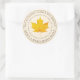 Personnalisez ce étiquette au sirop d'érable avec les coordonnées, le grade et le volume du propriétaire de l'entreprise (liste incluse des conversions américaines et métriques pour les tailles populaires). Design central de l'érable à sucre jaune. Nom de l'état en texte courbe sous la feuille d'érable.