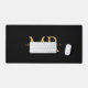 Tapis de bureau moderne, élégant, noir et or pour le professionnel d'affaires. Personnalisé avec votre nom et vos initiales dans une police serif élégante, centré sur le tapis. Contactez-moi pour obtenir de l'aide sur vos personnalisations ou pour demander des produits Zazzle correspondants ou coordonnés supplémentaires.