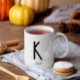 Monogramme Nom Café Mug blanc créé par szdesign. Mug minimaliste mais élégant, blanc personnalisé avec monogramme de lettre initiale noire et nom à travers la lettre. Un cadeau parfait ou un accessoire personnel facile à personnaliser (cliquez simplement sur le bouton "PERSONNALISER").